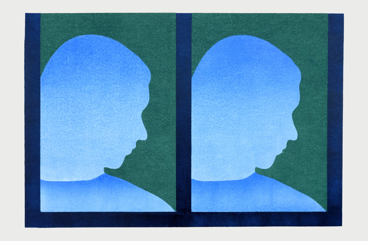 ![]() En face, 2019 estampe en quatre couleurs - four color relief print 41 x 29,5 cm édition de 7 ex. variables |