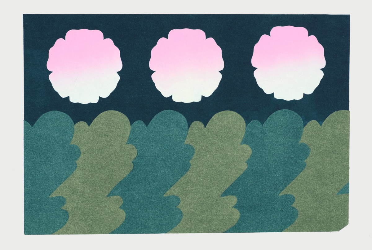 Trois lunes, 2019 estampe en quatre couleurs - four color relief print 41 x 29,5 cm édition de 6 ex. variables |