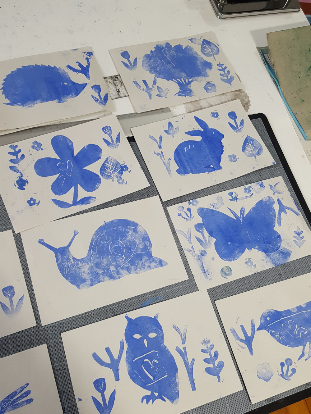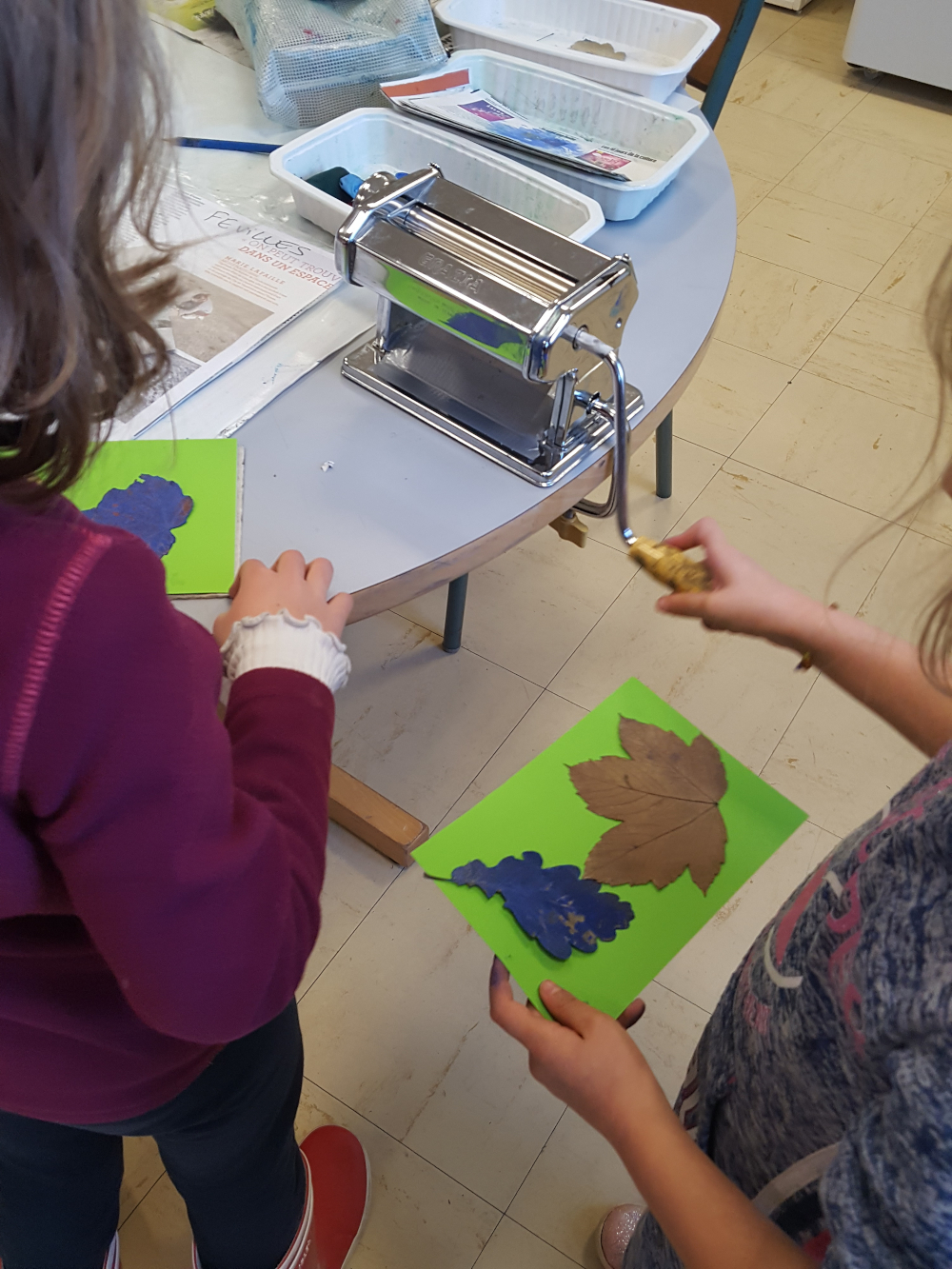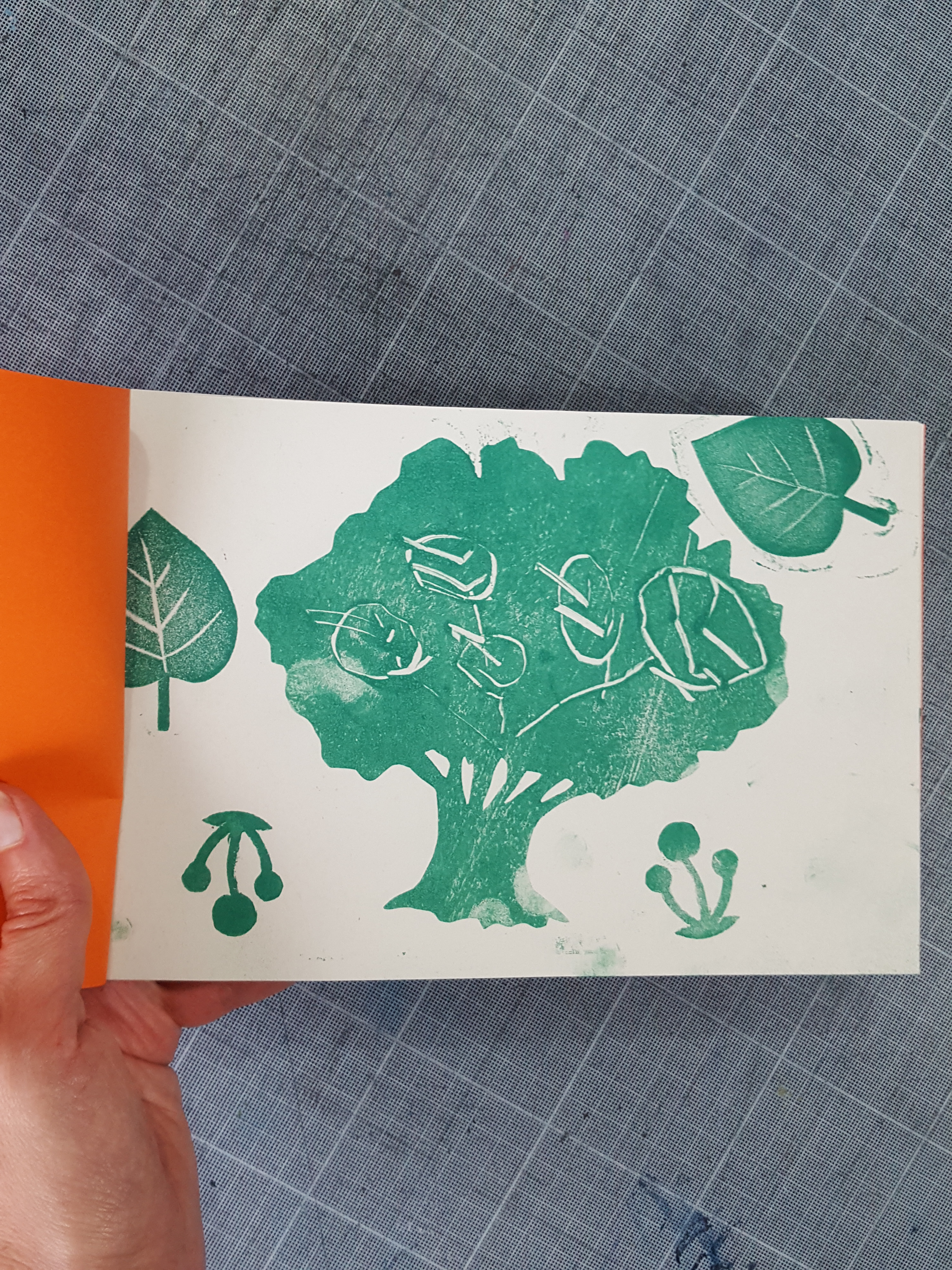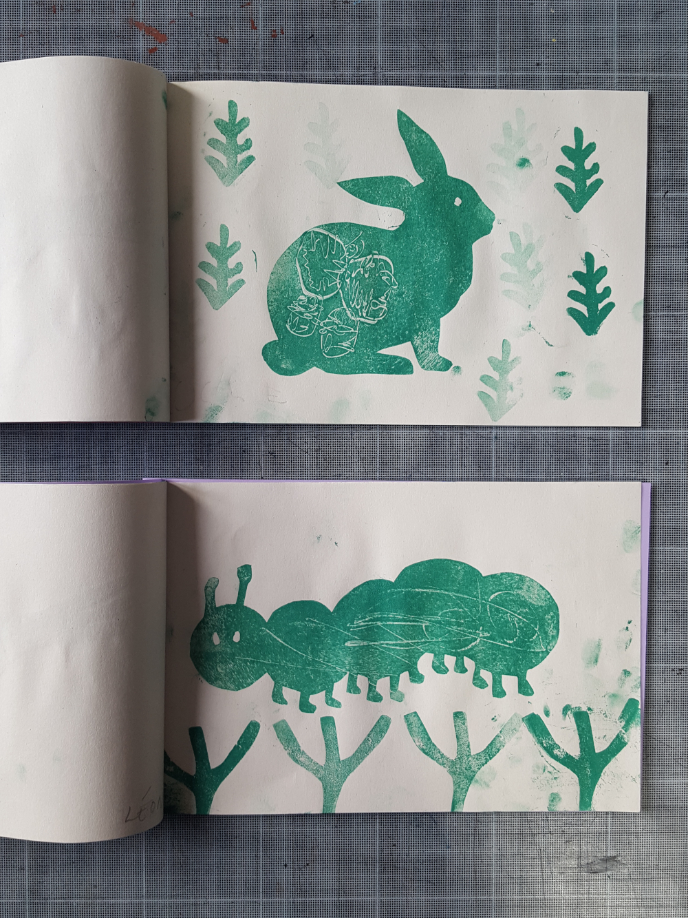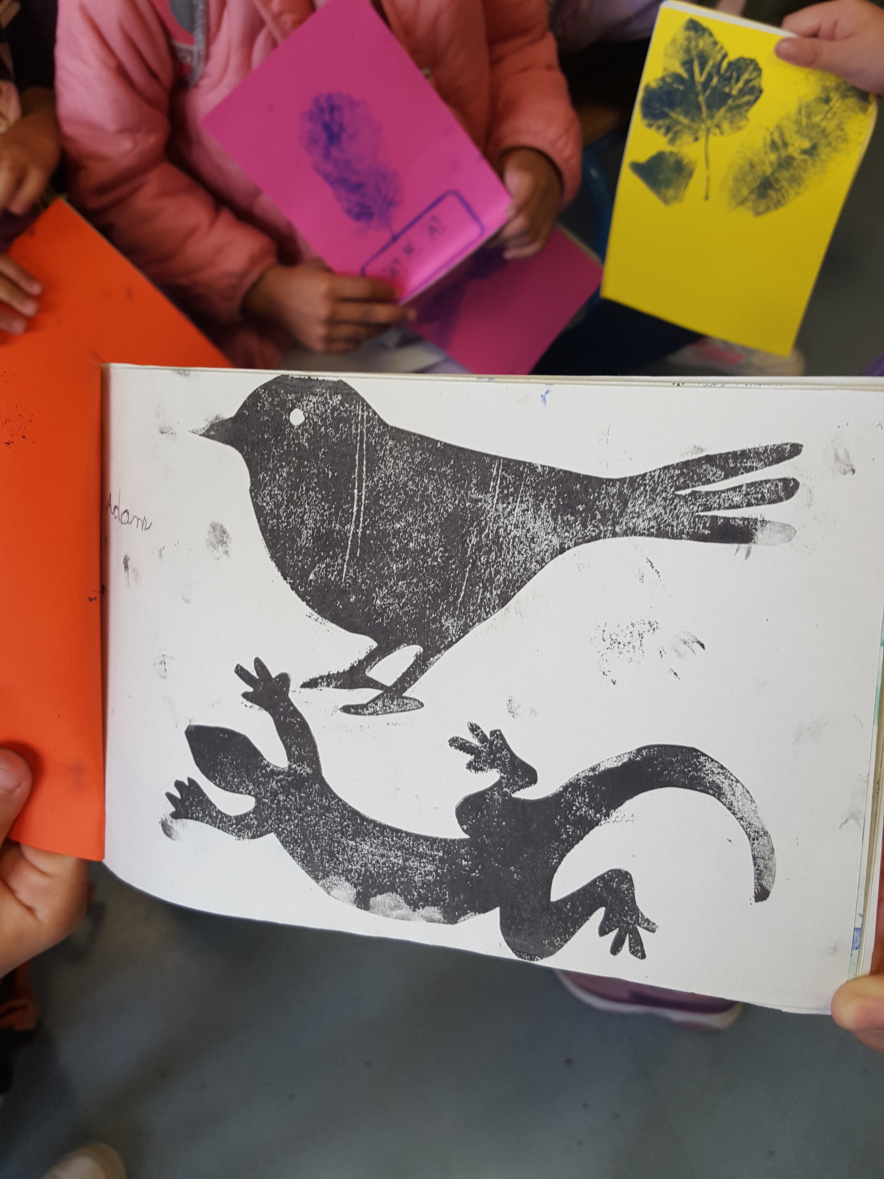 élémentaire de la Ville de Grenoble Réalisation d'un petit livret en utilisant différentes techniques d'impression : monotypes, empreintes végétales, tampons, pochoirs.