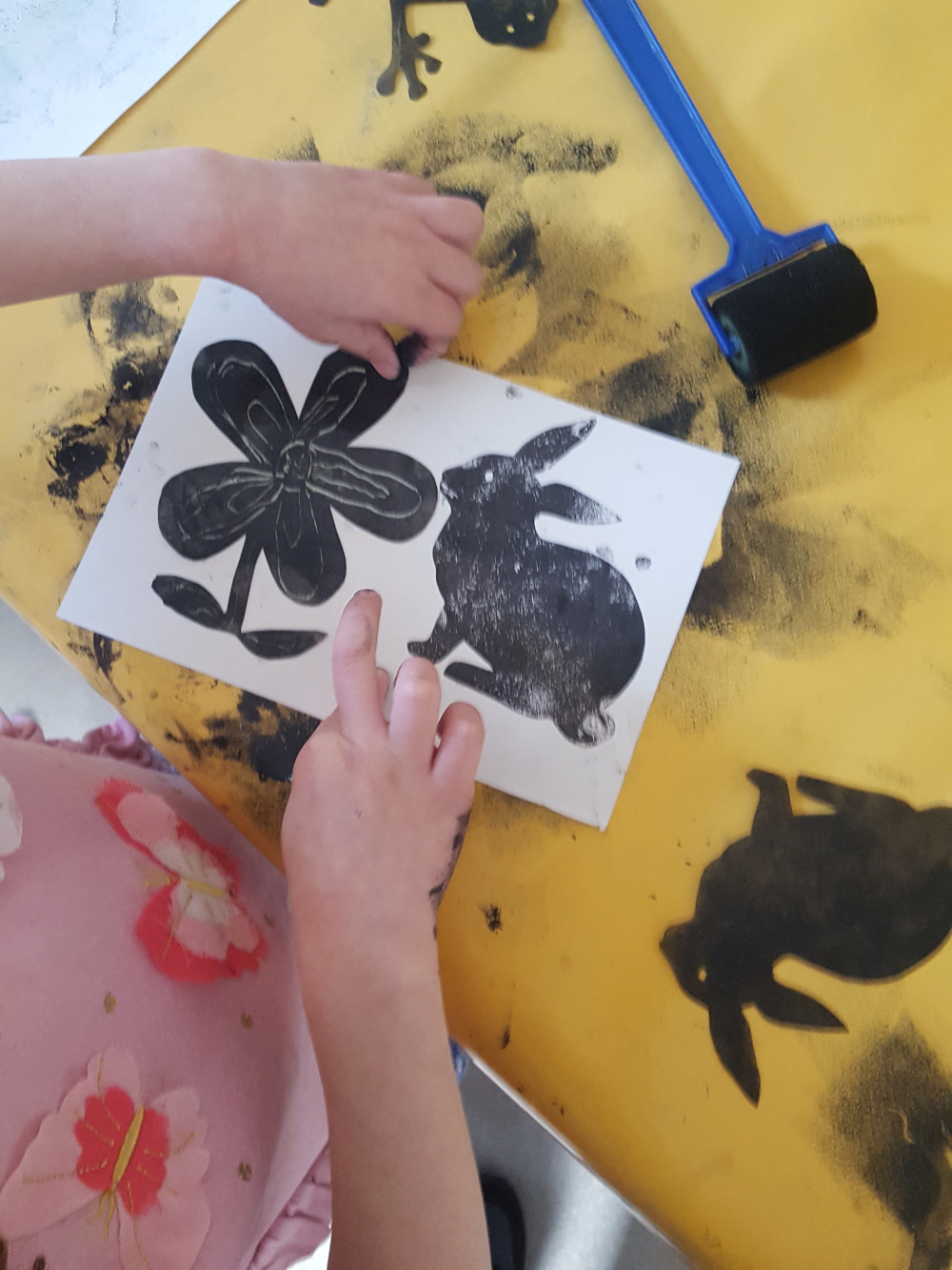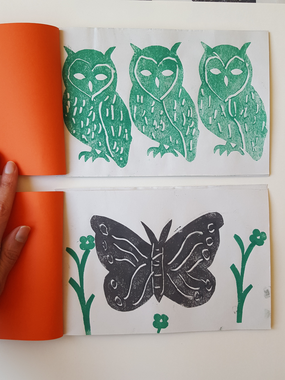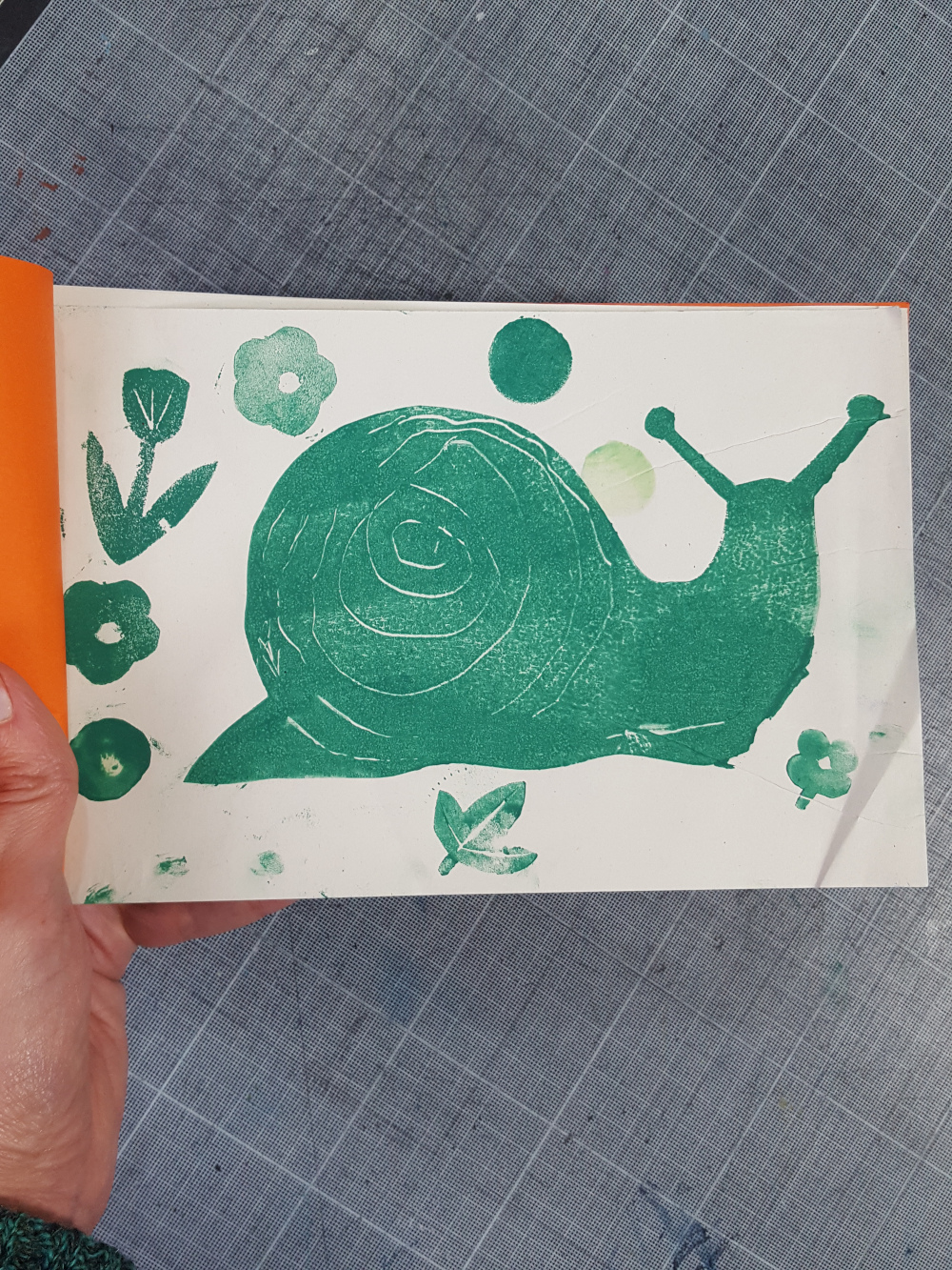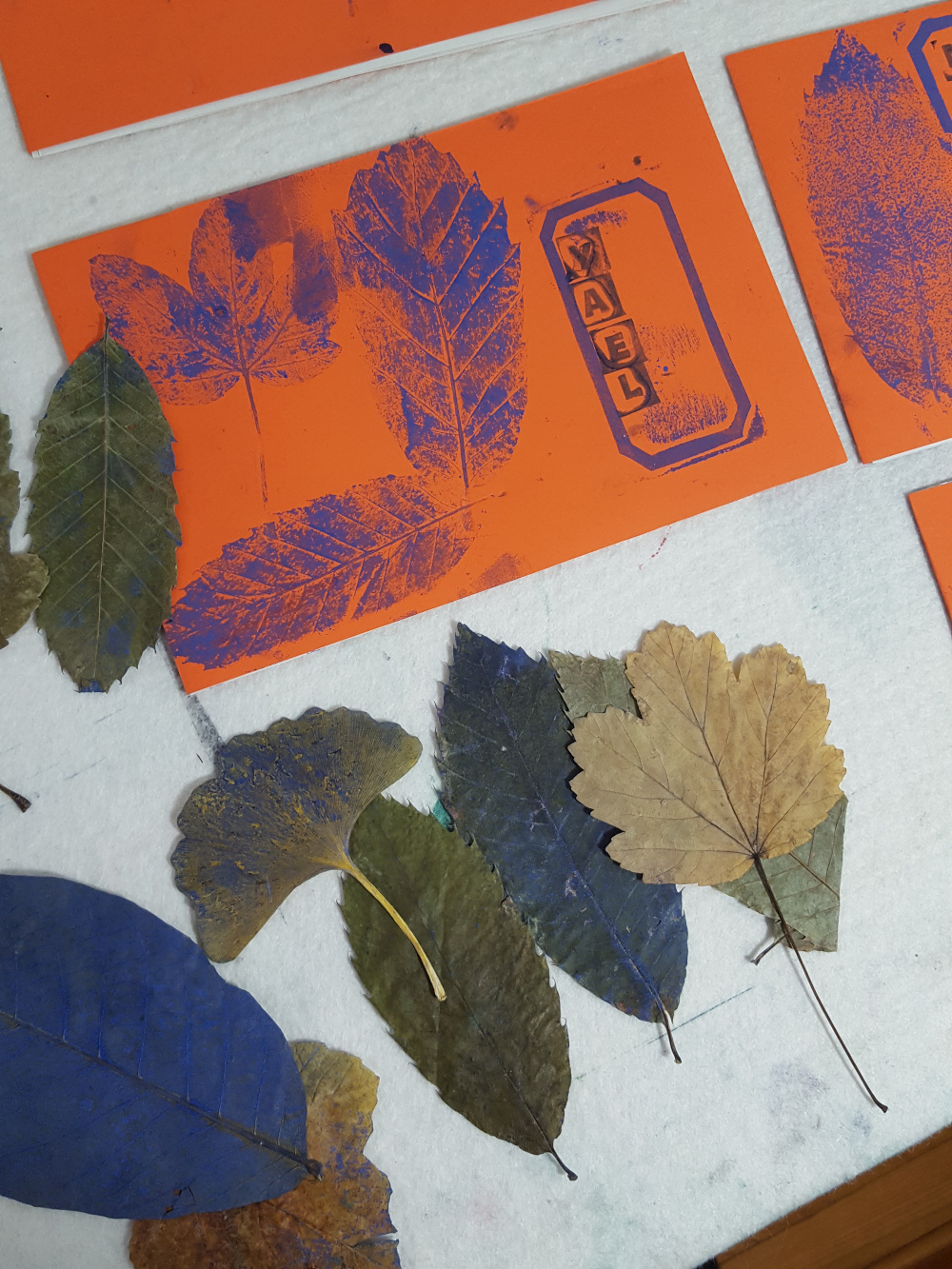 élémentaire de la Ville de Grenoble Réalisation d'un petit livret en utilisant différentes techniques d'impression : monotypes, empreintes végétales, tampons, pochoirs.